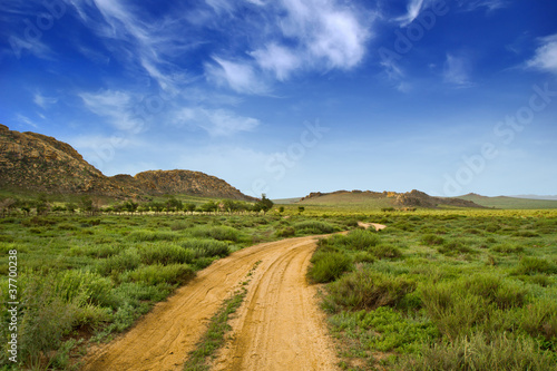 Fototapeta premium Chemin en Mongolie