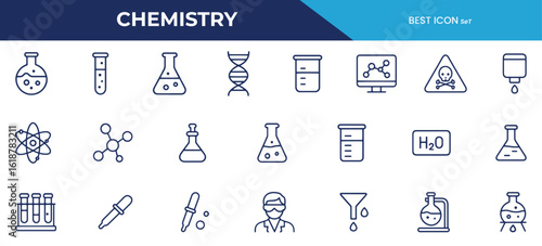 Naklejka premium Chemistry Line Icons Pack – Science Vector Icons Featuring Lab Equipment,...