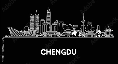 Fototapeta premium Chengdu Skyline China Cityscape Vector.