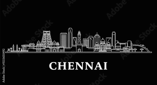 Fototapeta premium Chennai Skyline Vector with India, and Cityscape.