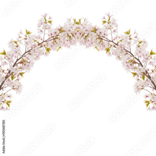 © Tungbackground, Obraz premium Cherry blossom arch border with black background