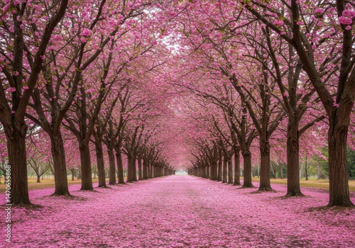 © Ms Vector, Naklejka premium Cherry blossom avenue in spring season