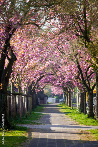 © EwaStudio, Naklejka premium Cherry Blossom. Blossom tree over nature background. Spring flow