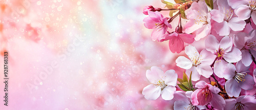 Fototapeta premium Cherry blossom bokeh background, copy space