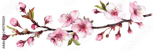 © MDNANNU, Naklejka premium Cherry Blossom Branch in Watercolor
