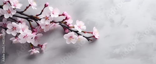 Obraz premium Cherry blossom branch on gray background