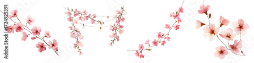 © R Studio, Naklejka premium Cherry Blossom Branches: Isolated Watercolor Floral Elements on White