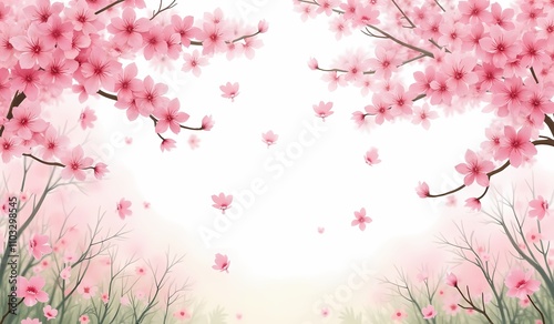 Fototapeta premium Cherry blossom branches with falling petals on soft background