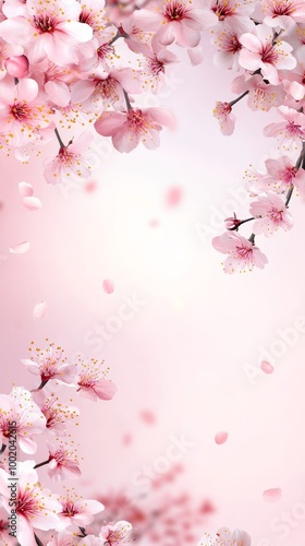 © labirint, Obraz premium Cherry blossom branches with falling petals, soft
