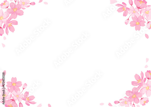 © Niko, Fototapeta premium Cherry Blossom Frame, Card Design Template, White Background