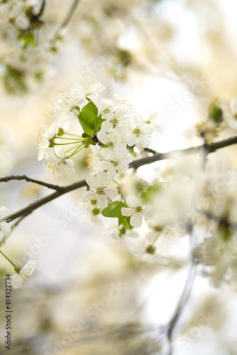 Fototapeta premium Cherry blossom in spring. White flowers on bloom