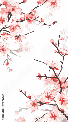 © Fire, Naklejka premium Cherry blossom isolated on white. AI generated art illustration.