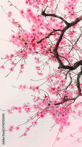 © Fire, Fototapeta premium Cherry blossom isolated on white. AI generated art illustration.