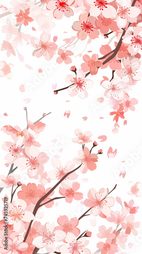© Fire, Fototapeta premium Cherry blossom isolated on white. AI generated art illustration.