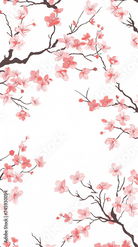© Fire, Fototapeta premium Cherry blossom isolated on white. AI generated art illustration.