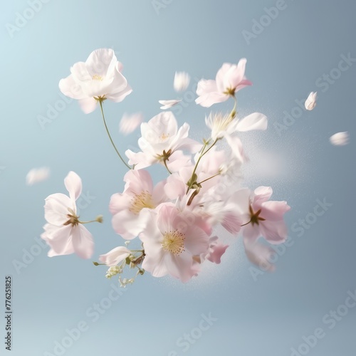 © Op Creator, Obraz premium Cherry blossom on the sky. Light pink flowers, sakura tree branch. Generative AI