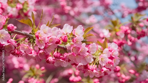 © Muhammad Ishaq, Fototapeta premium Cherry blossom pink flora bush in full bloom