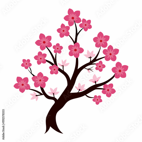 © Rana, Fototapeta premium Cherry blossom silhouette vector illustration on white background