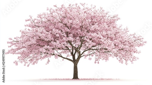 Obraz premium Cherry blossom tree in full bloom, isolated on white background, spring...