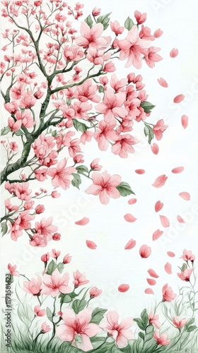 Naklejka premium Cherry blossom tree in full bloom nature watercolor artwork tranquil...