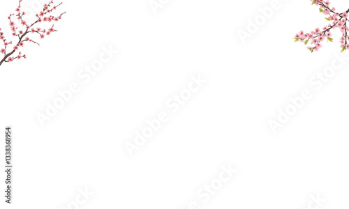 Fototapeta premium Cherry blossom tree, pink flowers on a white background