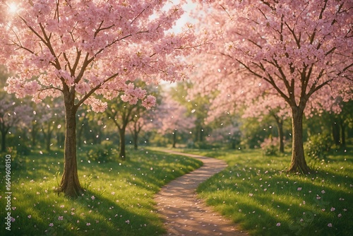 Naklejka premium Cherry blossom trees in spring park wallpaper