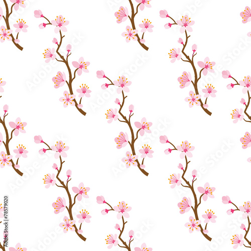 © sayuri_k, Fototapeta premium Cherry blossom twig -Seamless pattern
