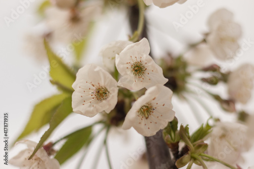 © Adrián, Obraz premium Cherry blossom with white flowers in spring time