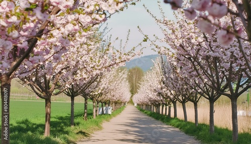 Fototapeta premium Cherry Blossom Wonderland: Walking Through a Spectacular Springtime Scene....