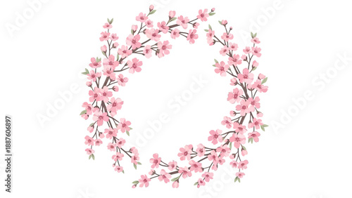 Obraz premium Cherry Blossom Wreath Frame - Delicate Pink Flowers and Branches on White Background