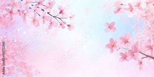 Fototapeta premium Cherry blossoms, a pastel pink and blue background, a banner with a copy...