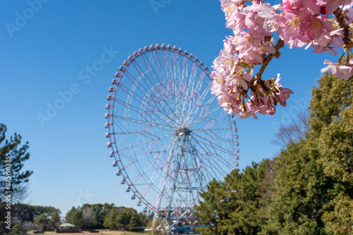© Kenta, Fototapeta premium cherry blossoms and a Ferris wheel