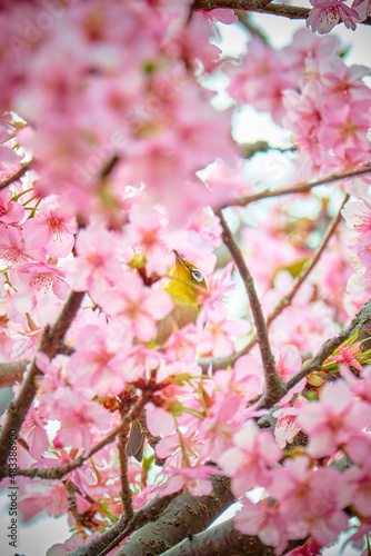 © mirute, Obraz premium Cherry blossoms and white-eyes