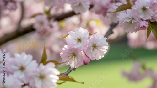 © dang, Fototapeta premium Cherry blossoms bloom in soft sunlight, symbolizing renewal and harmony.