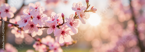 Obraz premium Cherry Blossoms blooming in soft sunlight