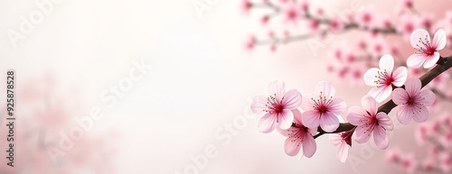 Obraz premium Cherry blossoms delicately blooming on branch against soft pink background with copy space