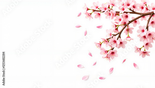 Fototapeta premium Cherry blossoms falling gracefully from branch, serene beauty