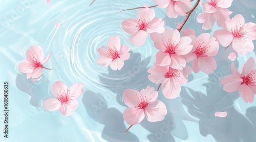 © meng, Fototapeta premium Cherry Blossoms Floating on Rippling Water Surface