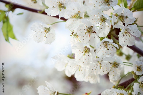 © Anna, Obraz premium Cherry blossoms for blooming spring white background
