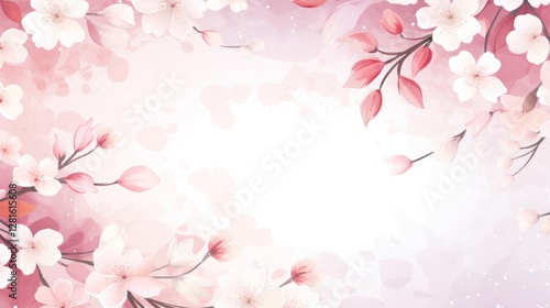 © ART STORE, Fototapeta premium Cherry Blossoms Frame, Spring Floral Border Background with Pink, White and Red Leaves. Soft Pastel Colors. Copy Space for text and design. Greeting, invitation card
