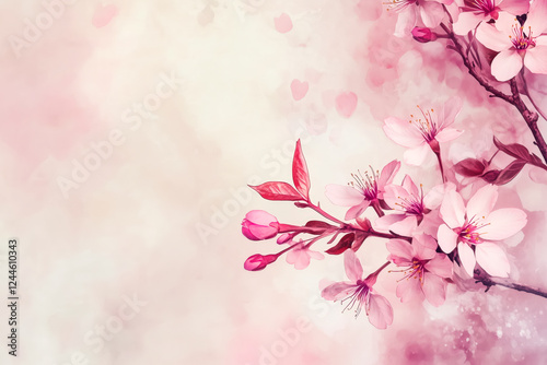 Fototapeta premium cherry blossoms in a delicate watercolor-style artistic illustration, copy space