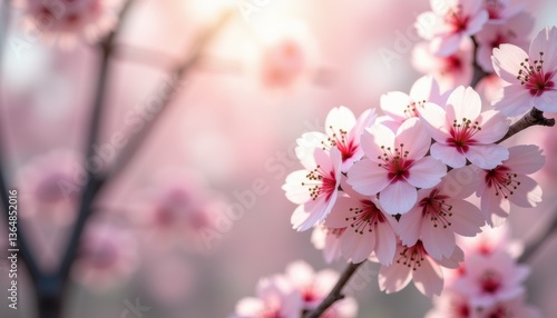 Fototapeta premium Cherry blossoms in bloom with soft light background