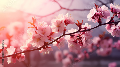 Fototapeta premium Cherry blossoms in full bloom create a soft and dreamy atmosphere