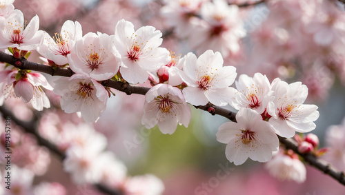 Fototapeta premium Cherry blossoms in full bloom create a stunning display of delicate flowers during springtime in a peaceful garden setting