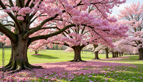 © Inna, Naklejka premium Cherry blossoms in full bloom with petals falling, spring beauty
