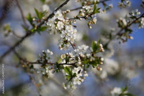 © oksnemova, Fototapeta premium cherry blossoms in may against a blue sky