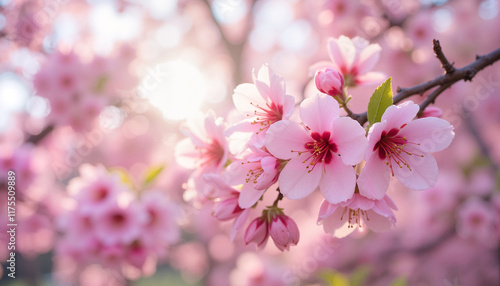 Obraz premium Cherry blossoms in soft sunlight during springtime