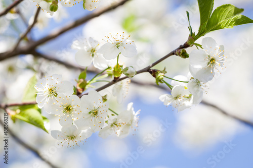 Fototapeta premium Cherry blossoms on a spring day in the garden