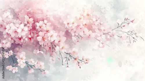Fototapeta premium Cherry blossoms, soft pastel color palette, watercolor style, white background