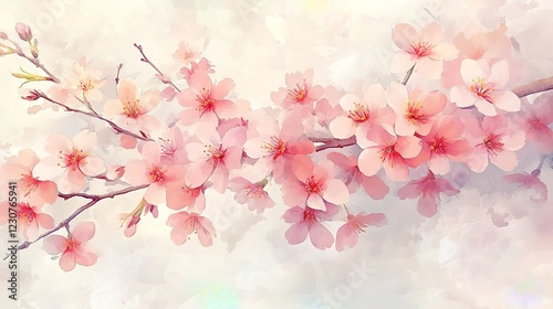 Obraz premium Cherry blossoms, soft pastel color palette, watercolor style, white background